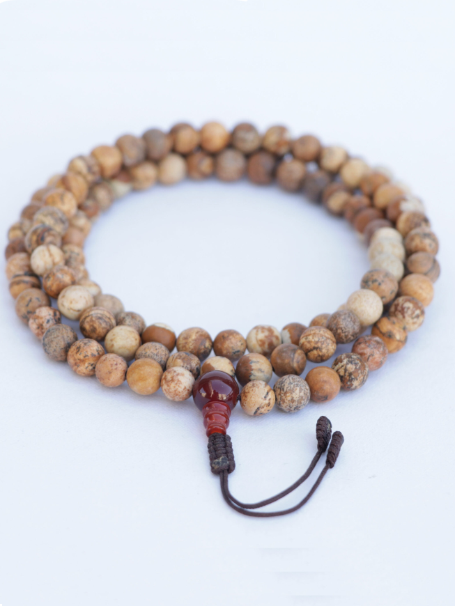 The 8 mm Picture Jasper Mala Necklace & Wrist Mala Set is a stunning piece of spiritual craftsmanship, handcrafted in Nepal by skilled artisans. Picture Jasper is known for its grounding and nurturing energy, often associated with deep meditation, inner harmony, and connection to the earth.