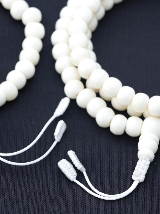 Experience the spiritual essence of the Himalayas with this handcrafted yak bone mala bead set, made in Kathmandu. This set includes a traditional 108-bead mala necklace and a matching wrist mala, both carefully crafted from ethically sourced yak bone.